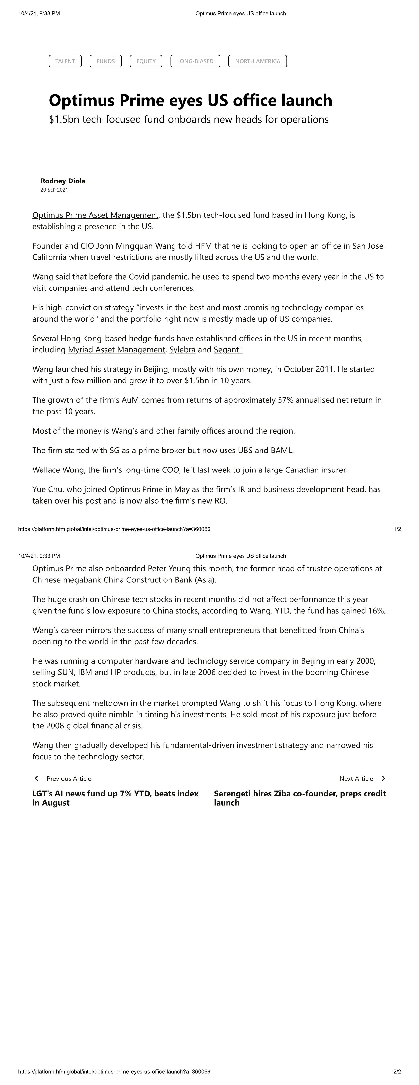 By entering this website and reviewing any materials presented herein (the "Site"), you accept in the entirety the following terms and conditions pertaining to the use of the Site. Optimus Prime Fund and its affiliates (collectively " Optimus Prime Fund") reserves the right to change the terms, conditions, and notices under which this Site is offered without notice at any time. Each use of the Site constitutes your agreement to be bound by the then-current terms and conditions set forth in these Terms of Use.